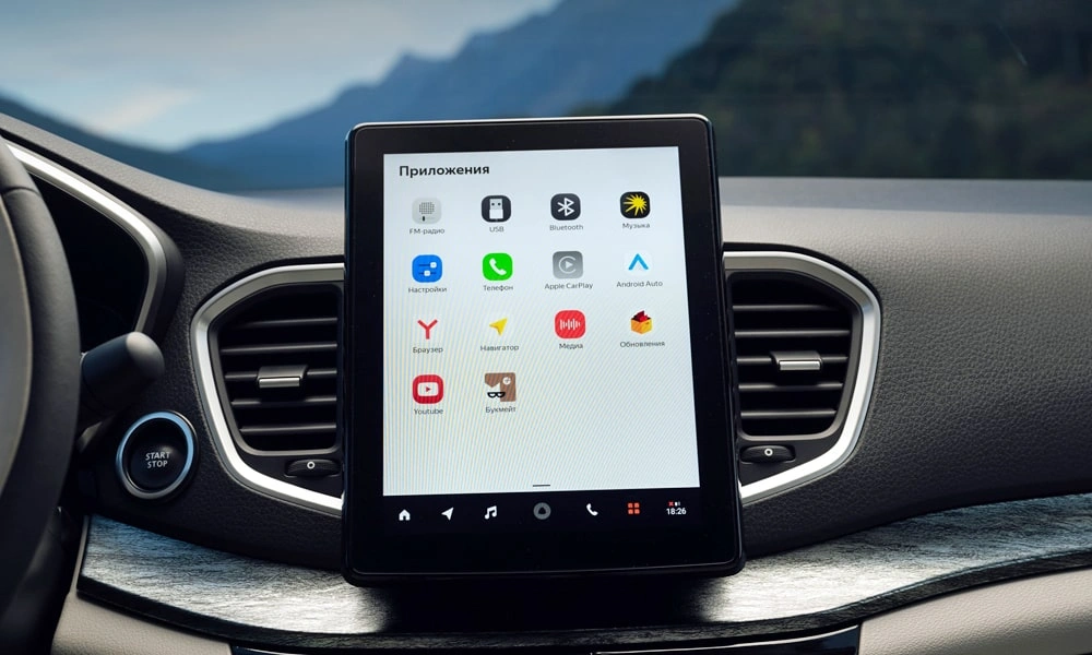 • Мультимедийная система LADA EnjoY Vision Pro (MMC 10,4'' TFT-IPS ёмкостный дисплей с цифровой комбинацией приборов 10,25'', FM, 3 USB, Bluetooth, Hands Free со сдвоенным микрофоном и функцией шумоподавления, Яндекс.Авто, Apple CarPlay, Android Auto)